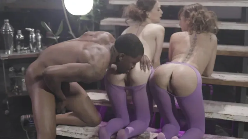 Миленькие девчонки порвали на себе колготки и устроили лесбийский секс с куни. Красотки планировали кончить от оральных ласк и мастурбации, но на помощь пришел черный друг. Мужик заставил крошек отсосать большой член, а потом дико трахнул обеих в тугие задницы через дырки в колготках и угостил спермой напоследок.